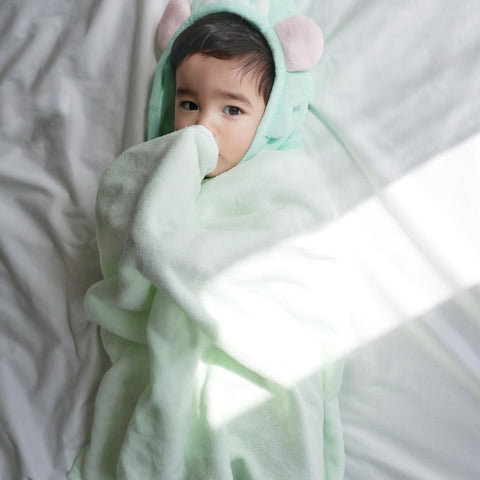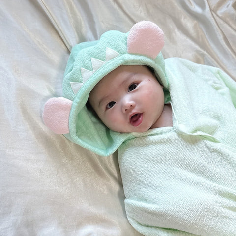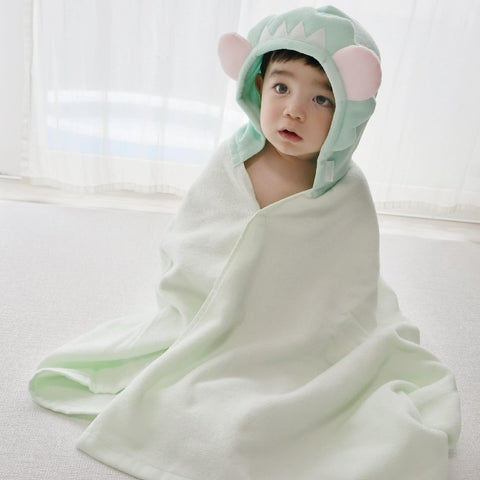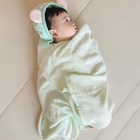 - お風呂上がりに赤ちゃんを包み、フードをかぶせることで、かわいいコジコジに。