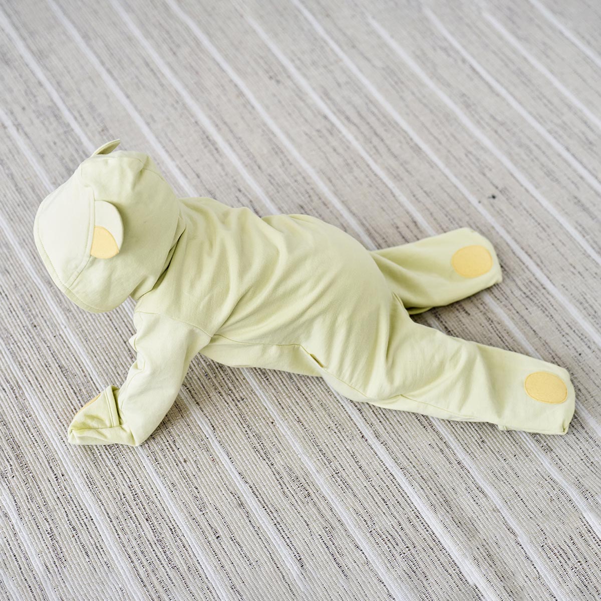 - ロンパースタイプなので、動いてもおなかが出ることがありません。