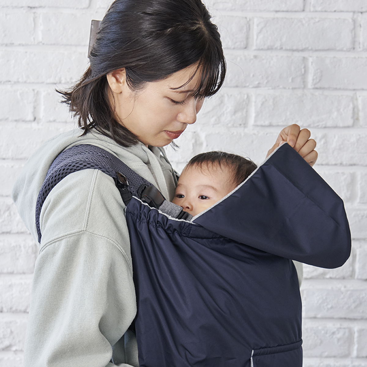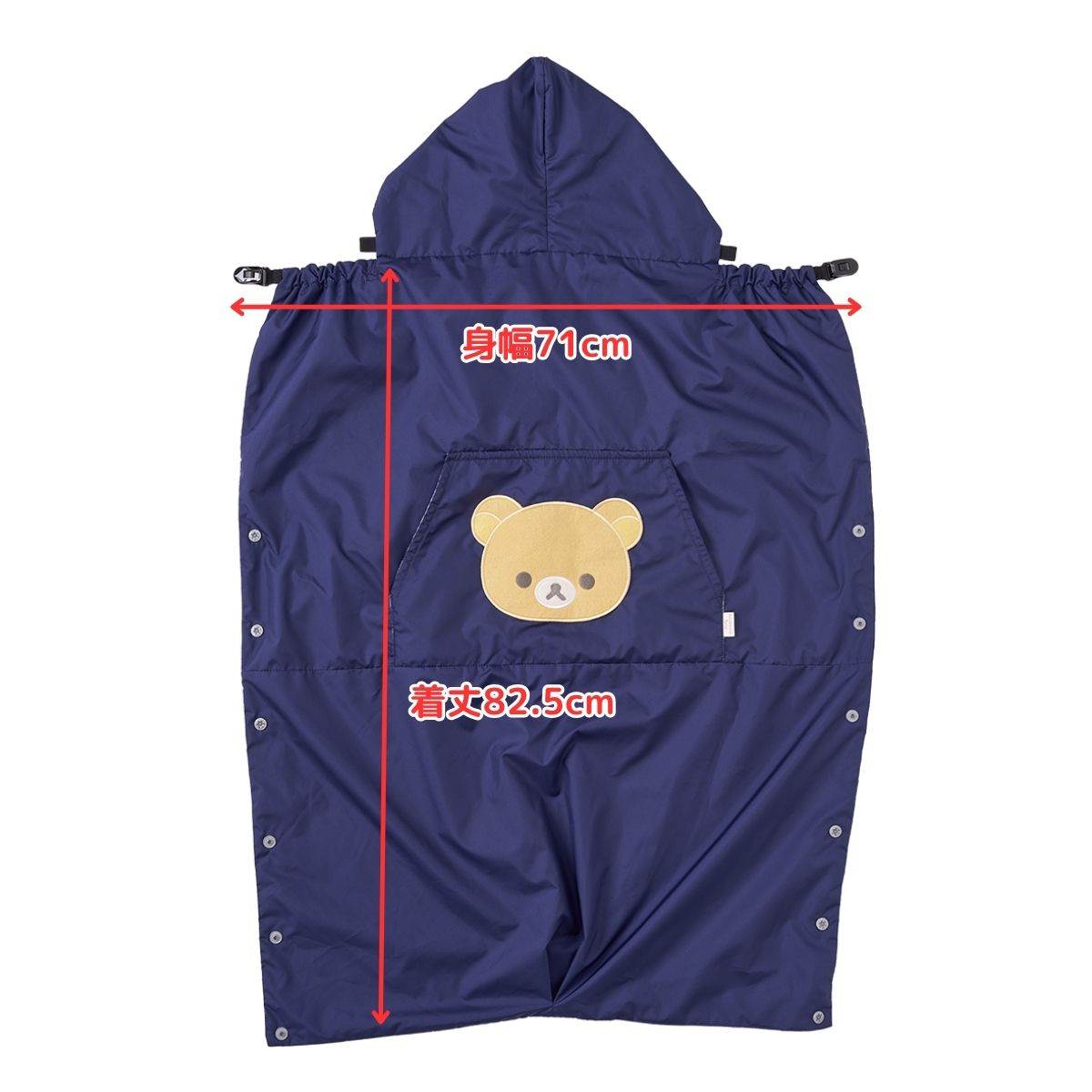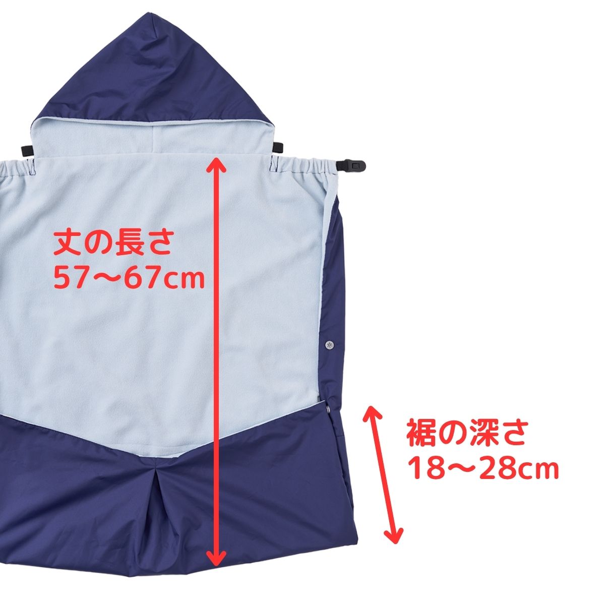 - 冬の冷たい風や雨からベビーを守ってくれる、フード付きの防寒ケープ。