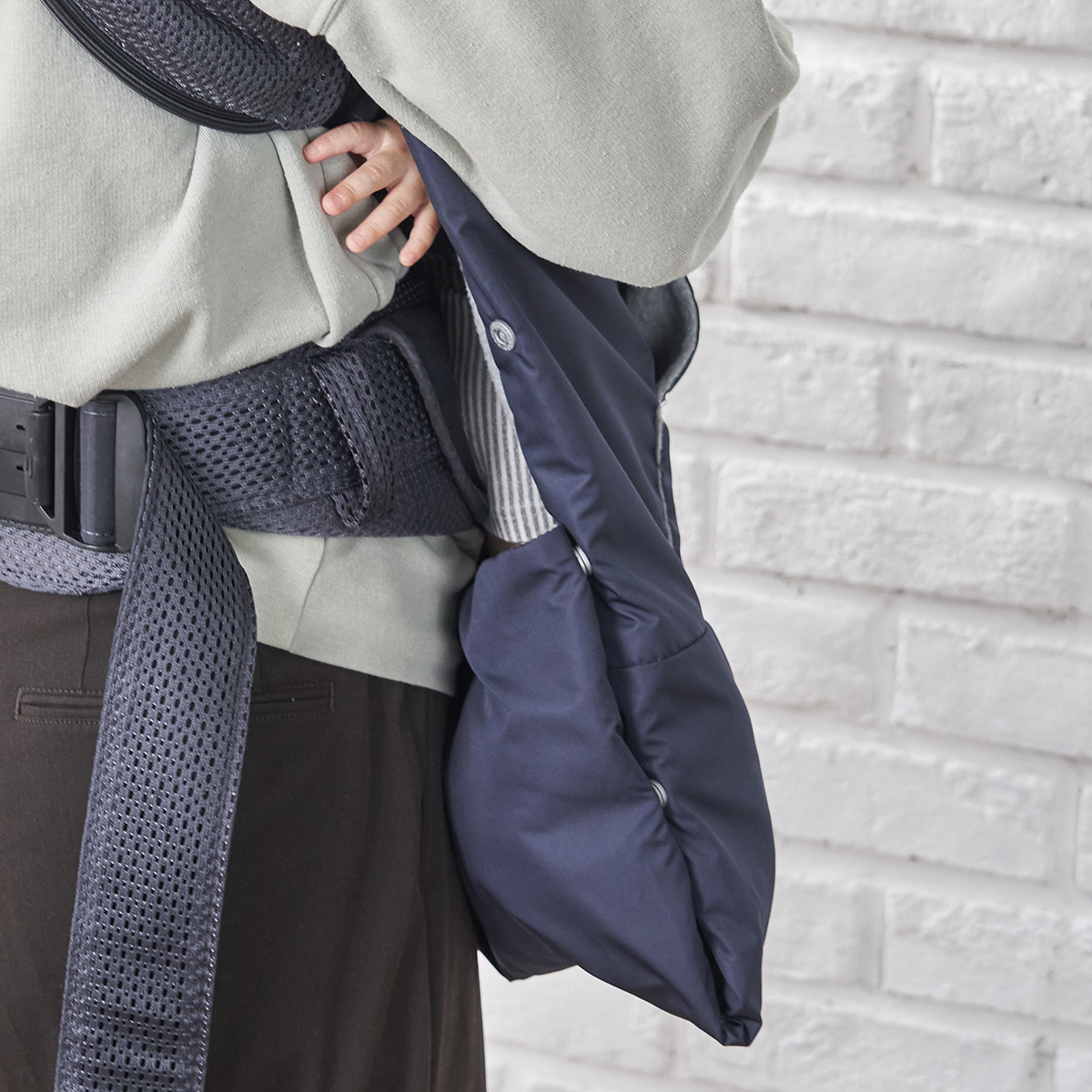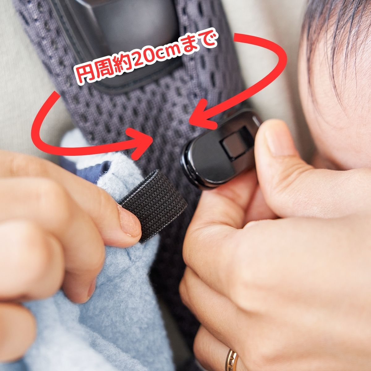- 抱っこ紐のショルダーベルトにクリップで挟む事も、巻き付ける事もできるので様々な厚みのショルダーベルトに対応。